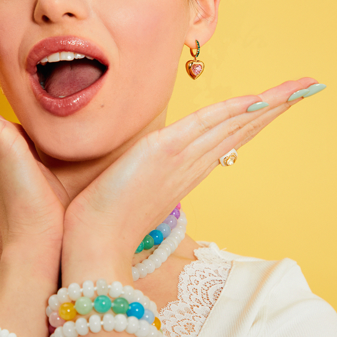 Green and Pink Heart Drop Huggie Hoop Earrings